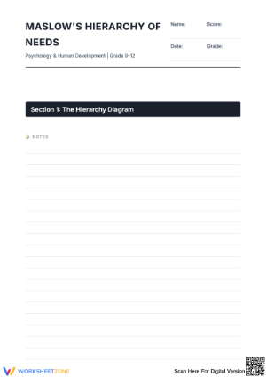 Explore Maslow's Hierarchy of Needs with this student note sheet! Perfect for psychology courses. Understand human motivation. Download now!