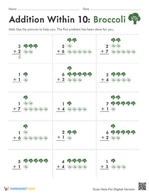 Make math fun with this Broccoli Addition worksheet! Perfect for practicing counting and basic addition with engaging visuals. Download and start learning!