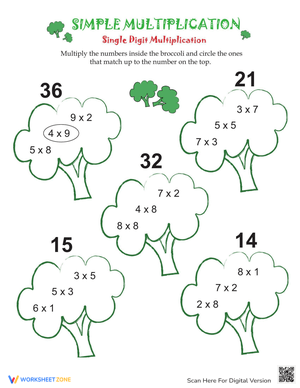Whether your child is just learning to multiply or trying to master those pesky times tables, this worksheet will have her mulitplying like a maniac in no time flat.Still not satisfied? Check out our smorgasbord of Simple Multiplication worksheets here.