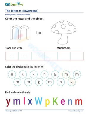 This free printable letter M worksheet engages kids with tracing, letter identification, and coloring activities. A fun way for them to learn vocabulary such as "moon, mushroom, mug".