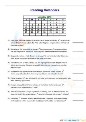 This collection includes reading calendar worksheets, from easy to difficult levels, which help students to improve reading calendar skill.