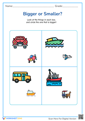 Compare sizes of different transportation methods with this fun worksheet! Perfect for enhancing observation skills. Explore Transportation Comparison now!