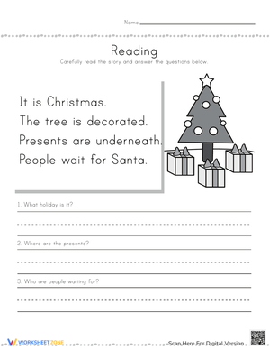 Enhance literacy skills with a worksheet combining the joy of reading and the festive spirit of Christmas.