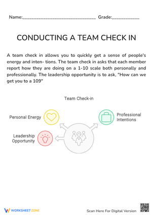 Improve team dynamics with this Conducting a Team Check-In worksheet! Facilitate better communication and understanding within your team. Download today!