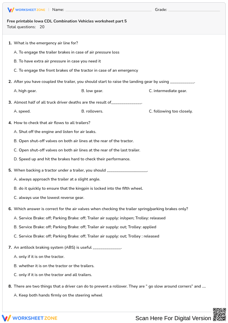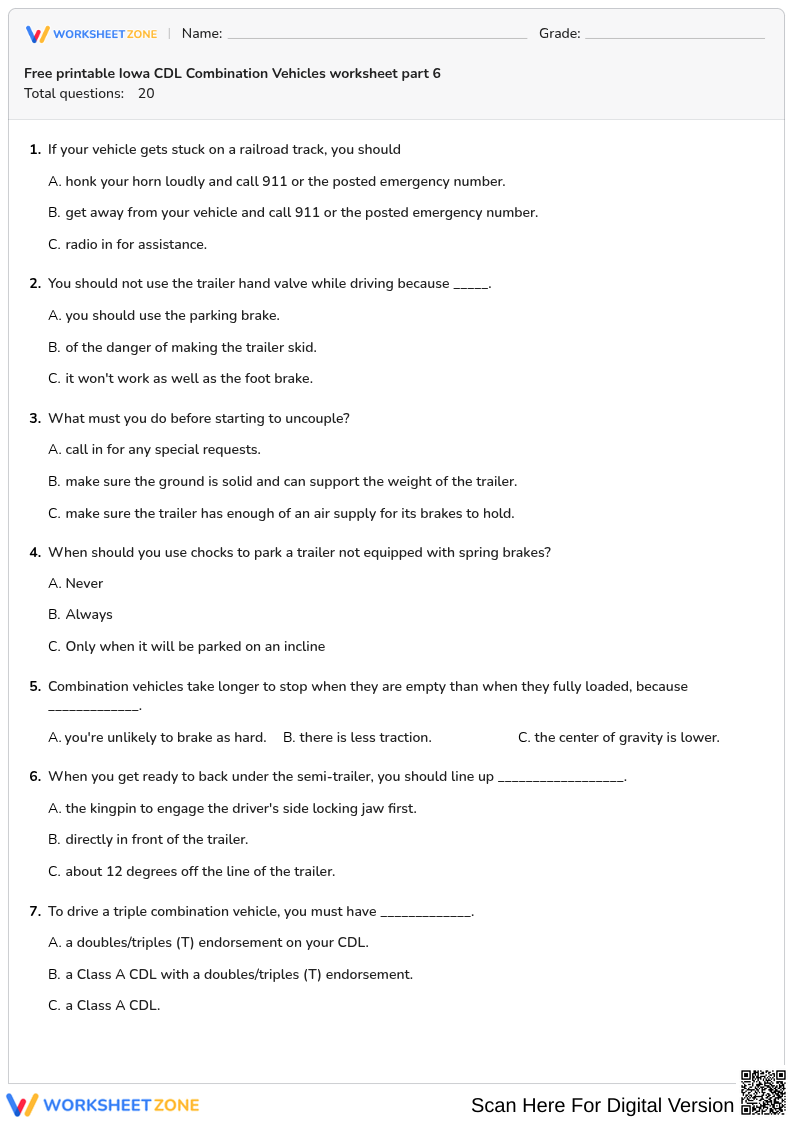 Our printable Iowa CDL Combination Vehicles worksheet will help you get 100% ready for your coming exam
