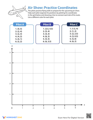Practice plotting coordinates with this fun air show themed worksheet! Enhance your understanding of the coordinate plane. Get started with coordinates now!