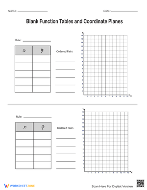 Practice using function tables and coordinate planes with this worksheet. Strengthen your understanding of functions and graphing. Perfect for algebra students!