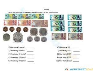 Improve your money math skills with this 'Count the Coins' worksheet! Learn to identify and count coins effectively. Start counting your way to success!