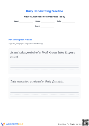 This free printable handwriting worksheet explores Native American history. Kids can improve their penmanship while learning about Native American culture.