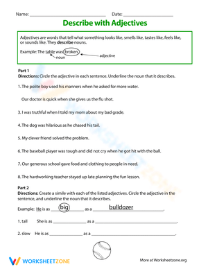 Enhance descriptive skills by practicing with adjectives. Improve vocabulary and writing abilities effectively. Perfect for students of all ages. Download it today!