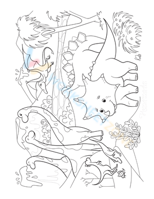 In other side, where dinosaurs live happily in their own land! Let's paint this picture with your favourite colors!