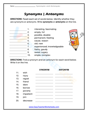 Read each set of words below. Identify whether they are synonyms or antonyms. Write that affect on the line.