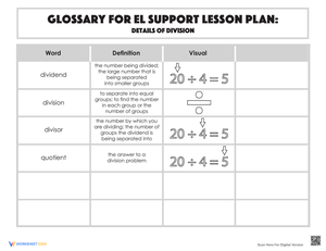 Utilize this glossary alongside the EL Support Lesson: Division Skits.