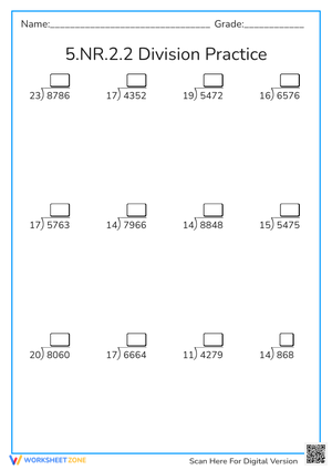 Practice dividing multi-digit numbers with this useful math worksheet!