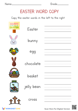 Boost vocabulary and handwriting with this Easter worksheet! Kids copy Easter-themed words.