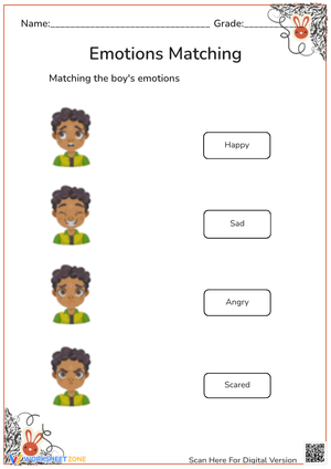 Students have to match the faces to the written emotions in these worksheets.