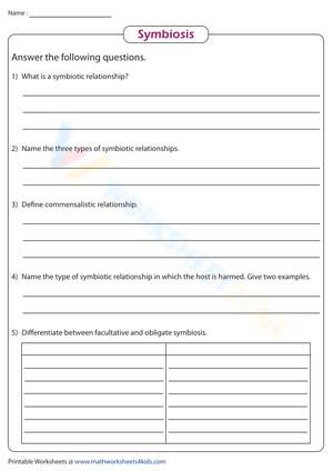 Have 7th grade and 8th grade students attempt to answer the questions about symbiosis and symbiotic relationships in this worksheet to gain a deeper insight into this ecological phenomenon.
