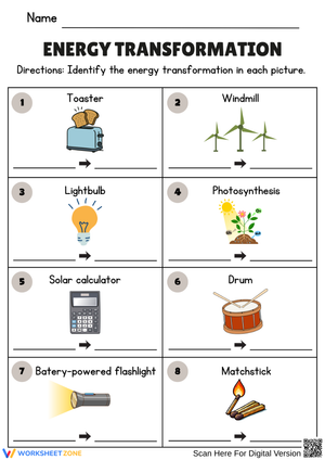 Discover how energy changes form with this energy transformation worksheet. Students identify real-life examples of energy conversions in daily life.