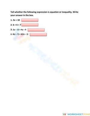 Master the identification of equations and inequalities with this worksheet! Practice recognizing the differences. Download now for effective learning! #EquationsAndInequalities