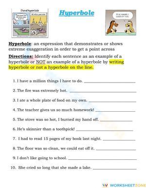 I will give you the entire universe just to be your friend: hyperbole. The whole crashed when I heard the bad news: hyperbole. You speak so loud that every citizen of this nation can hear you: hyperbole. Shiela will die if she doesn't get to watch BTS concert next year: hyperbole. I can drink the entire river out of my thirst: hyperbole. "I told you to clean your room a million times.": hyperbole. You could have knocked me over with a feather: hyperbole. Santa Claus' helpers are known as subordinate Clauses: pun. The two pianists had a good marriage. They always were in a chord: pun. The grammarian was very logical. He had a lot of comma sense: pun. What did one plant say to another? What's stomata: pun. How do construction workers party? They raise the roof: pun. Two antennas met on a roof, fell in love and got married. The ceremony wasn't much, but the reception was brilliant!: pun. A fire station burns down: irony. A marriage counselor files for divorce: irony. A post on Facebook complaining how useless Facebook is: irony. A pilot has a fear of heights: irony. A man who needs medical assistance is run over by the ambulance: irony. A traffic cop gets his license suspended because of unpaid parking tickets: irony