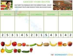 Make learning fun with this grocery store-themed worksheet! Practice counting and problem-solving skills in a practical and engaging way. Try it now!