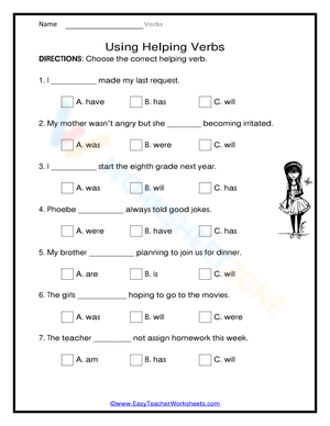Teach kids helping verbs with this engaging worksheet. Includes examples and sentences to highlight auxiliary verbs.