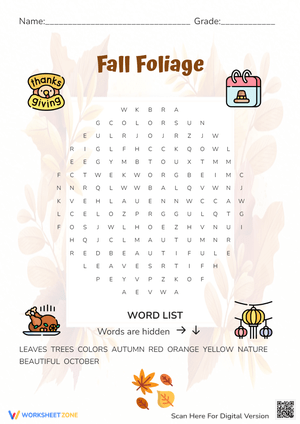 Enjoy the Fall season with this Word Puzzle! A fun worksheet designed to enhance your vocabulary and cognitive skills through an engaging, autumn-themed challenge.