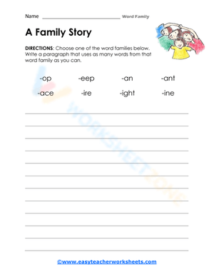 Designed for children and beginner students, this family worksheet serves as a practice exercise for spelling and writing the names of family members.