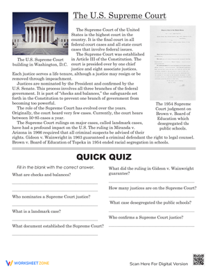Understand the Supreme Court! Explore its role and functions within the US judicial system. Download this informative civics worksheet on the Supreme Court now!