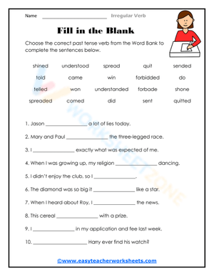 Choose the correct past tense from the Word Bank to complete the sentences below.