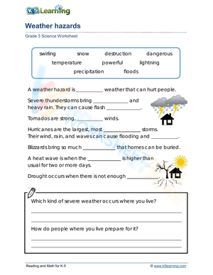 Students examine the causes and effects of severe weather such as droughts, hurricanes, floods and tornadoes.