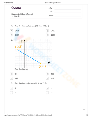 Round the answer to two decimal places. Solve these problems in this worksheet to enhance your knowledges about Distance and Midpoint Formula.