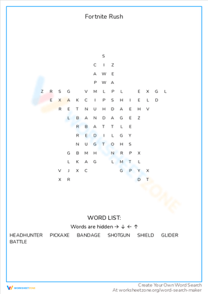 Get in the Fortnite Rush with our engaging word search puzzle! Enhance vocabulary and have fun finding hidden terms related to the popular game!