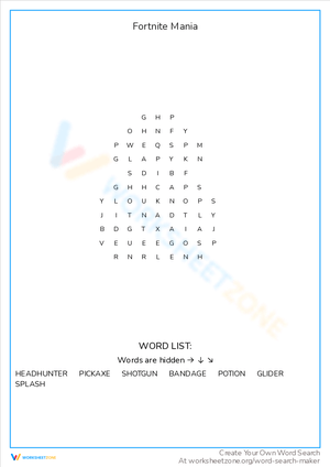 Jump into Fortnite Mania with our exciting word search! Perfect for enthusiasts, find hidden words related to the game and have hours of fun!