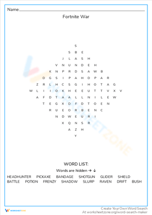 Join the Fortnite War with our word search challenge! Find hidden terms related to the game and enhance your vocabulary skills. Play now!