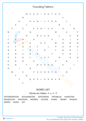 Learn about American history with this Founding Fathers Word Search! Boost vocabulary and honor the key figures in the foundation of the USA.