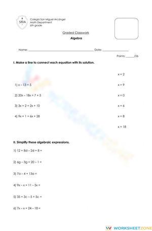 Algebra online worksheet for 6th grade. You can do the exercises online or download the worksheet as pdf.