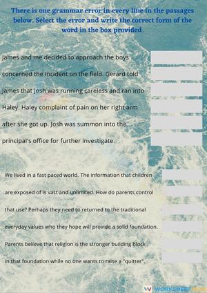 Select the sentence that uses commas correctly. : Well, I'm sure that there is an easier way.. Select the sentence that uses apostrophes correctly. : The ladies' book club will meet on Tuesdays.. Popular music and acting _______________ fields in which few manage to succeed. : are. Almost every ambitious young man and woman eventually ______________ to admit defeat. : has. Neither difficult sacrifices nor lack of recognition _____________________ enough to discourage her. : was. Every student in the class remembered ________________ homework. : . Neither Dee nor Ashanti uses ________________ calculator very often. : her. Each boy designed _________________ own robot. : his. Choose the correct item:: He acted very sensibly.. Which part of the sentence is not parallel?To get to Washington, a person must travel by bus, by airplane, or ride in his own car. : ride in his own car. Which part of the sentence is not parallel?When the children noticed they were lost, they stopped laughing, their energy declined, and their speed slowed. : they stopped laughing. Which part of the sentence is not parallel?Some students choose to study such careers as how to cook, nursing, and hairdressing. : how to cook. Choose the correct sentence:: Without shoes on, Jane stomped on the bug.. Select the sentence that appropriately uses a semicolon: I went to the store; I bought ice cream.. Select the sentence that uses commas correctly: I did, believe it or not, get a 36 on the ACT.. Crows bats, and bumblebees make Justin Bieber wish he could fly. What change needs to be made to this sentence: Add a comma after Crows. Which sentence uses commas correctly: I wanted to buy cookies, chips, and candy.. The dogs over ____________ have been known to dig many holes. : there. My cousins complain when __________ bored: they're. Jackson and Jillian found ________ children playing at the park: their. My brother was ______ tired to go to the movie last night: too. _______ the best students ever!: You're. Which sentence is punctuated correctly: We decided to eat at Olive Garden, my favorite restaurant.. Be sure to tie both of your __________ before the race begins: shoes. We unloaded 50 ___________ at the warehouse. : boxes. Don't forget to brush your _____________ at least twice a day: teeth. Whose English is ................? His or mine: better. My phone's expensive, but Joe's is ............................ : more expensive