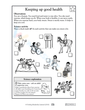 Sweating is good for you! In this science worksheet, your child learns about things that keep kids healthy and checks all activities that make kids sweat.
