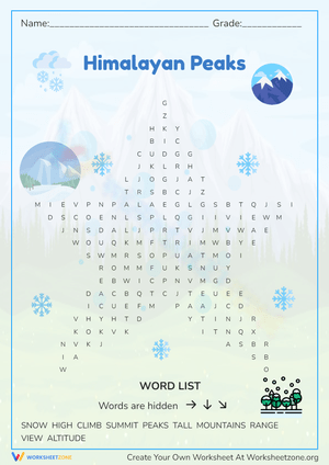 Study the Himalayan Mountains with our detailed worksheet! Learn about geography and mountain systems. Perfect for students, start exploring today!