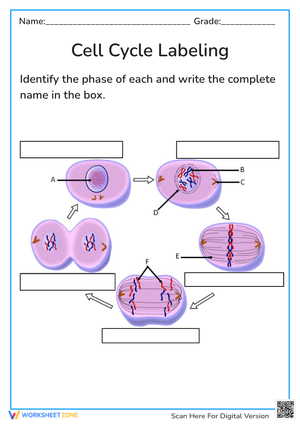Students have to identify the phases of the cell cycle and then fill the names in the boxes.