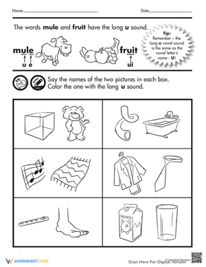 In this worksheet, we'll explore the concept of long vowels, with a specific focus on the long "u" sound. By working through this worksheet, children will become familiar with the long "u" sound and develop the ability to recognize it in various words. For additional practice with vowels, I encourage you to explore the complete Sounding It Out series. © Learning Horizons Inc. All rights reserved.