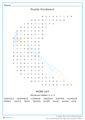 Explore royalty with this captivating word search! Discover monarchs and kingdoms. Download the Royalty Word Search worksheet today!
