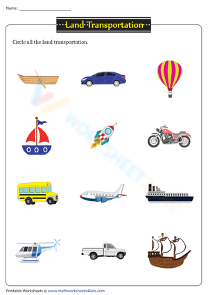 The wheels on the bus go round and round, all day long! Learning will now be a mile a minute as kids in preschool identify the vehicles in this land transportation worksheet, and circle the ones that ply on the ground.