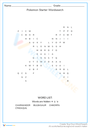 Select your starter Pokemon with our engaging word search! A fun way to learn. Click to download and choose your starter Pokemon today with fun!