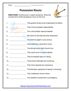 Enhance your grammar skills with this Possessive Nouns worksheet! Practice forming possessive nouns and improve your writing. Download now and start learning!