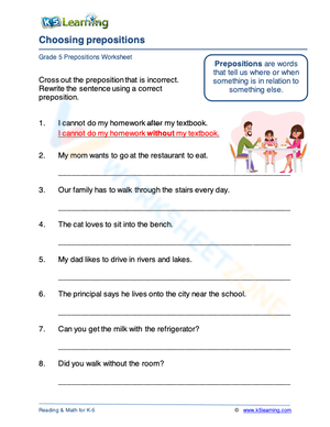 Learn about prepositions with this worksheet! Practice identifying and using prepositions to improve sentence structure. Download and enhance grammar skills!
