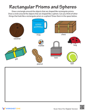 Learn to identify Rectangular Prism shapes with this fun worksheet! Enhance geometry skills and shape recognition effectively. Check it out and start learning!