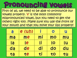 French is NOT a __________language: phonetic. Give an example of a silent letter: H. French has silent final consonants except....: C, R, F, L. The French "R" is called an _________"R": uvular. Puffs of air called ______________ is NOT wanted when speaking French: aspiration. What are the two kinds of vowels in French: oral and nasal. What two consonants make a vowel nasal: m, n. What do the letters "i and e" do to the "c and g": make the letters soft. What letters make the "sh" sound in French: ch. What do these two letters sound like in French: "qu": k. What does the "s" sound like trapped between two vowels: z. What is this accent mark: ´: aigu. What is this accent mark: `: grave. What is this accent mark: ç: cédille. What is is called when two words are linked together, when a silent sound is brought back to life, like les amis: liaison. What is it called when a vowel like an "e" is dropped from the first word so that two words can be phonetically joined? : elision. What does "OI" sound like: wa. What does "eau" sound like: o. What does "UI" sound like: we. What accent is this: ˆ: circonflexe