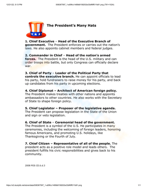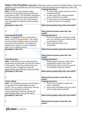 Detail the role of the President with this useful worksheet. Perfect for civics lessons on the executive branch. Students and teachers will find it helpful!